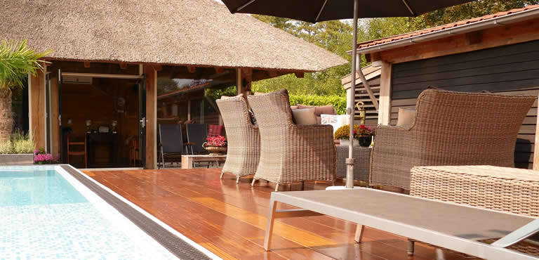 With more than 15 years of experience in the world of woodworking, we can help you like no other in realizing your wishes in the field of decking, shelters, log tables, fences, steeldoors, and much more! View all our products in our webshop, or visit us in the showroom.