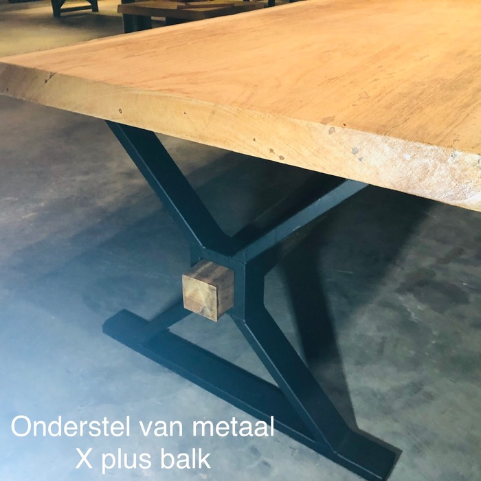 We make all our bases in the Netherlands, so again "made in Holland". Our bases are made of extra thick metal, firmly welded and top finished with a coating. Choose a metal support of your choice, in this product you choose a tree trunk leaf, the support can be ordered separately. We recommend that you use our frame bases. They are strong and stable enough to bear the weight of a tree trunk table. A table usually has a weight of 100 kg per metre length.